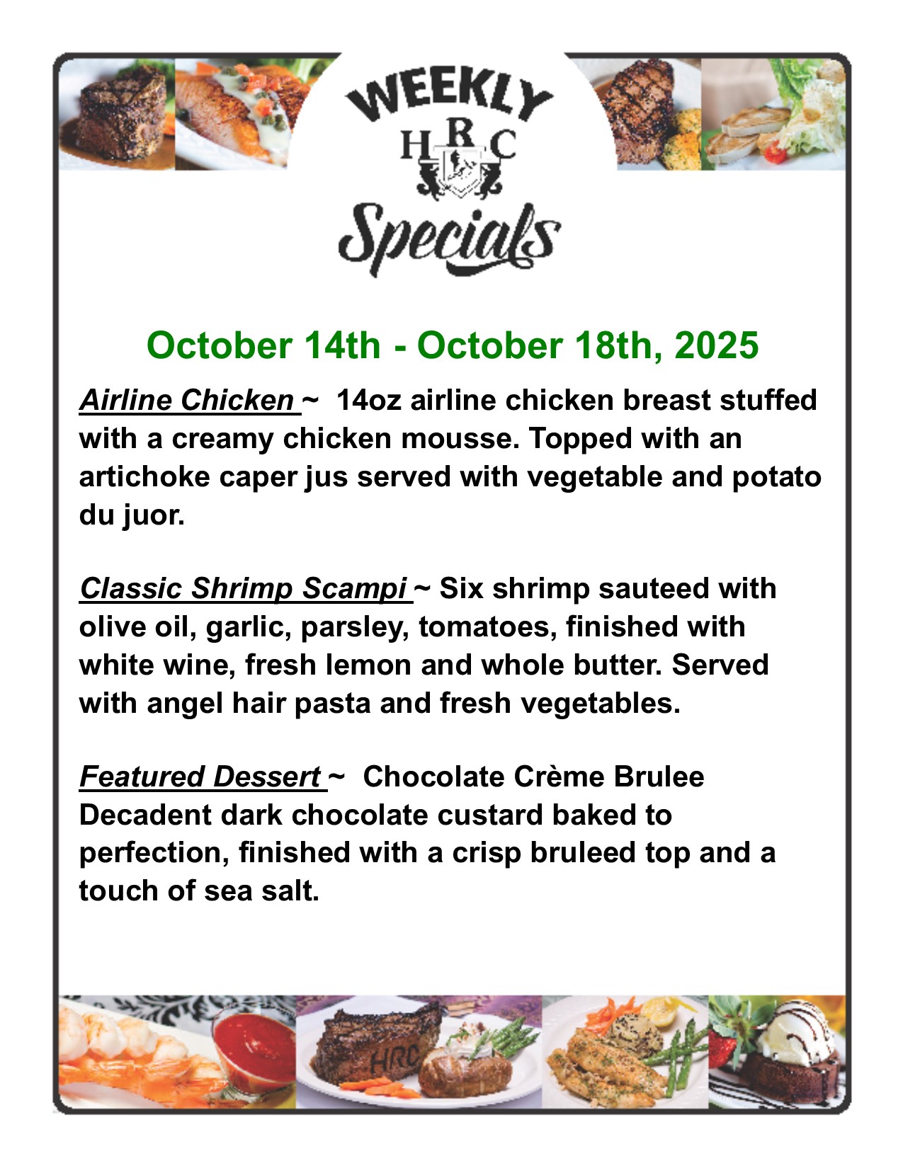 NOTE:  Reservations are requested. For same-day reservations, please phone the Club, 248-477-1000.